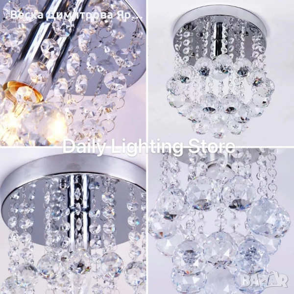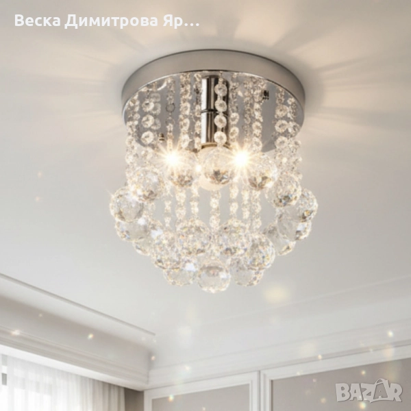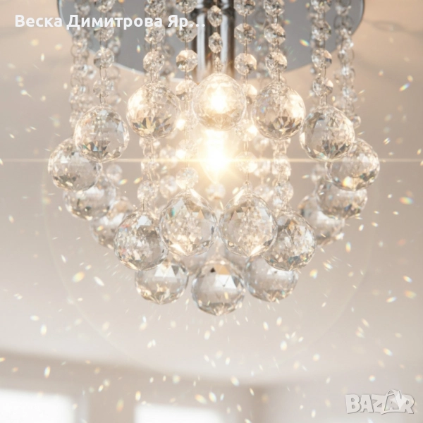 Модерен таванен полилей с големи кристални сфери и основа в сребристо → Обява 52134996