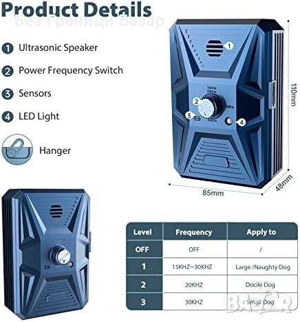 Ново Ултразвуково устройство против лай IPX4, 3 режима, до 10 м обхват
