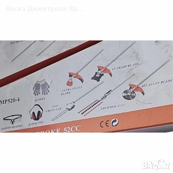 Двигател: 2-тактов, 52 cc (изписано на опаковката: 2 STROKE 52CC);