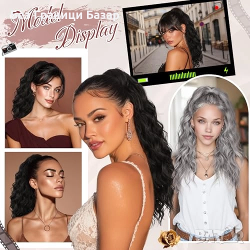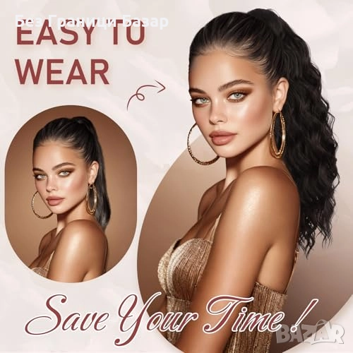 Дълга къдрава опашка 51 см с удобна щипка за лесно поставяне