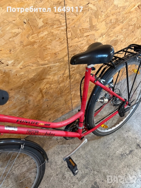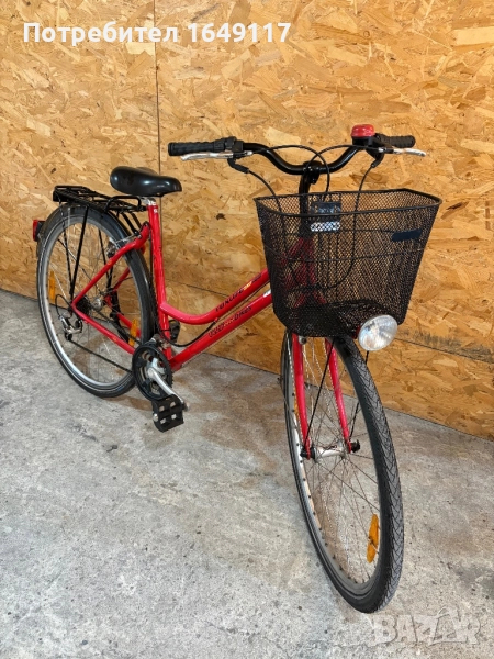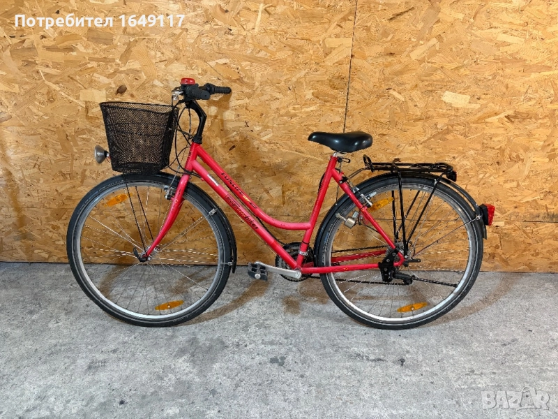 Продавам 28цола, употребяван дамски-градски велосипед Funlife 4.0 TRC [made in Germany]. Олекотена, тънкостенна рамка - 51см, с ниско прекрачване. Външни скорости Shimano STX - 21бр. c grip shift команди. Никелирани курбели. Eргономична седалка Selle Royal Moody с алуминиево колче. Алуминиеви - двойностенни капли с оси Shimano Deore, и гуми Schwalbe Marathon Plus с усилен градки профил. Предна и задна алуминиеви кантарни спирачки Corratec. Черно кормило с алуминиева лапа. Заден багажник с натоварване до 25кг + кошница за багаж отпред. Олекотени пластмасови калници, стойка, динамо с халогенен фар и габаритна светлина, светлоотразители, звънец.