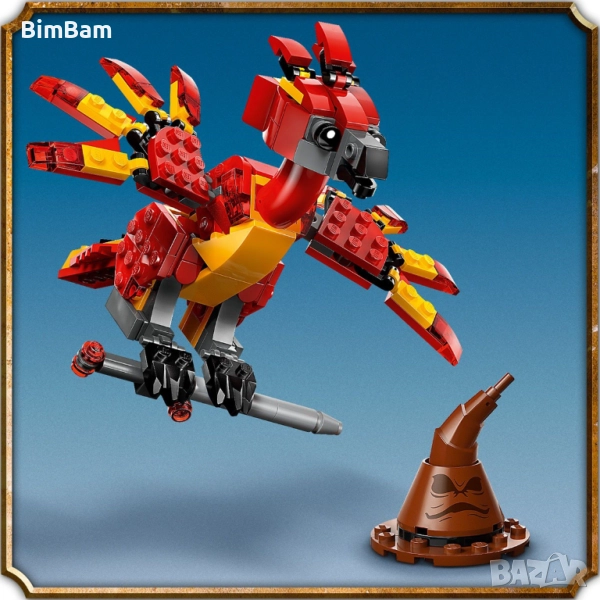 Комплектът позволява сглобяването на фигурата на Фоукс - феникса на Дъмбълдор, с напълно подвижни крила, тяло и захващащи нокти. Фоукс може да държи Разпределителната шапка или Меча на Грифиндор - и двете направени от LEGO тухлички, което прави играта още по-вълнуваща и реалистична. Включена е и фигура на бебето Фоукс - перфектна за допълване на колекцията или за игра с останалите герои от вселената на Хари Потър.