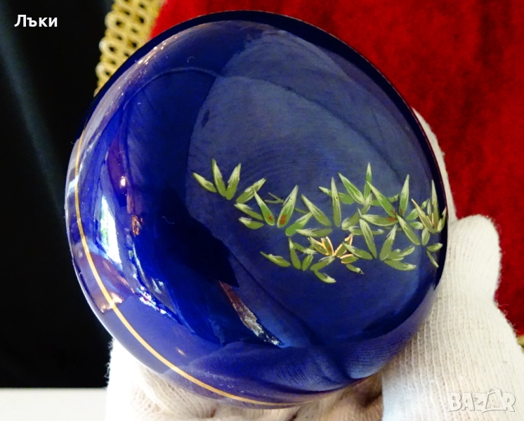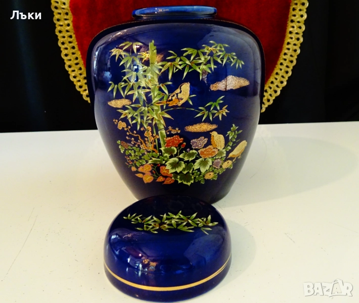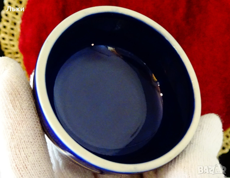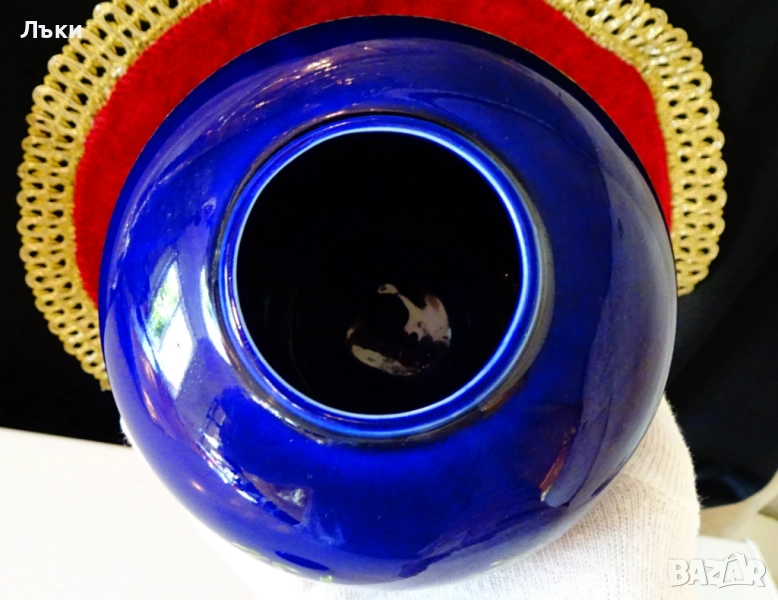ефектно с перфектен мастилено син фон от кобалт.Височина 16 см.,диаметър 14 см.