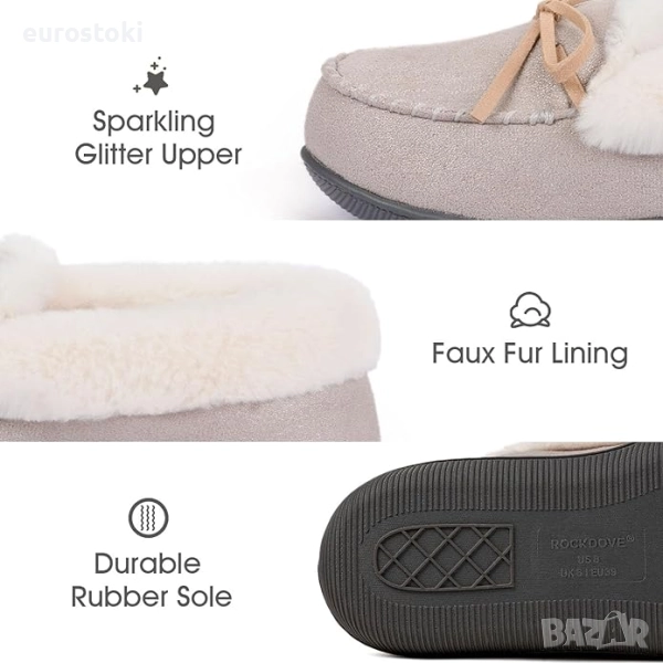 Дамски чехли с блясък RockDove. 40 номер. Светло сиво Стелка 25 см Изпитайте максимална топлина
