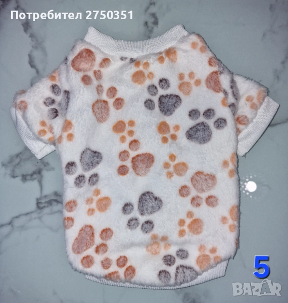 5. Бяла плюшена блуза с кафяви и сиви лапички - XS,S,M. 15лв