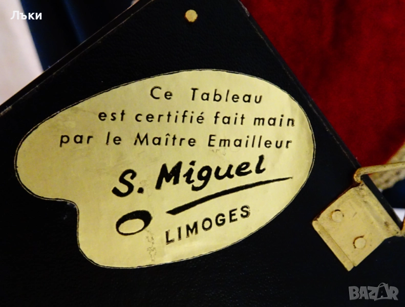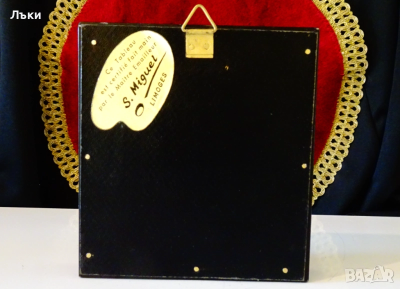 миниатюра Лимож,подписана от художника S.Miguel.Картината е ръчно рисувана с емайли върху меден лист.Има