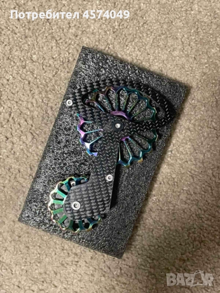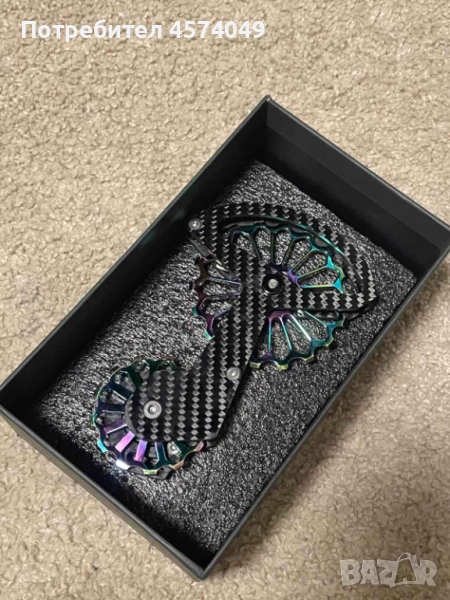 Продавам леко използвана карбонова система за заден дерайльор Racework Ceramicsе съвместимо с обтегачи Shimano 12 скорости или Di2 серии R9200/R8100. Моделът е с големи керамични ролки 13T-18T в oil slick цвят и карбонова рамка – предлага плавна работа и по-ниско съпротивление при въртене.или Di2 серии R9200/R8100