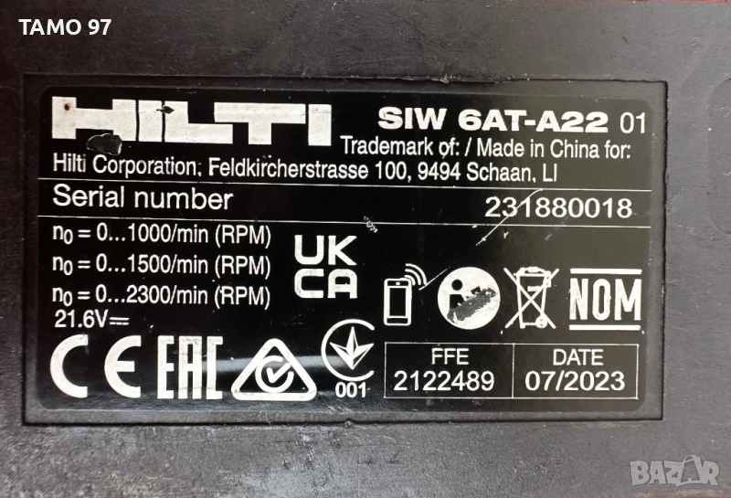 Хилти с 3 скорости, машината има козметични следи от използването, но работи отлично, внос от Франция. Обявената цена е за само гайковертта без батерии и зарядно.
