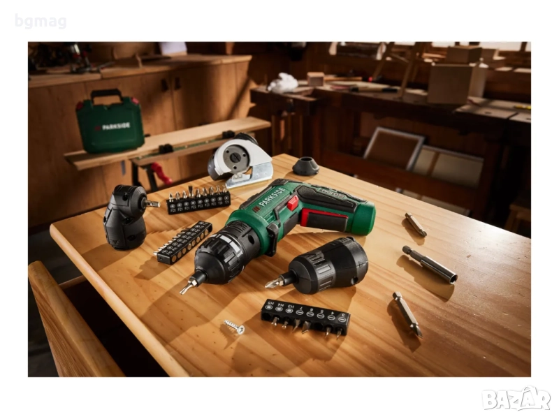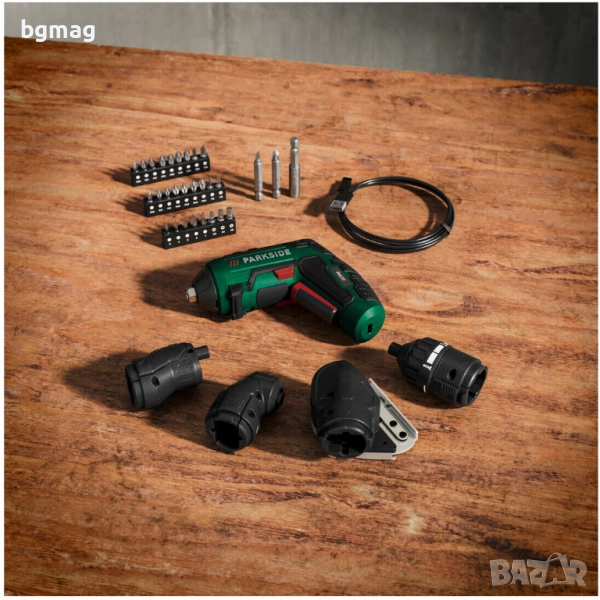 - Аксесоари: 1 приставка за въртящ момент, 1 приставка за изместване, 1 приставка под ъгъл, 1 приставка за рязане, 26 бита (25 mm), 2 бита (50 mm), 1 удължител за бита, 1 USB-C кабел за зареждане