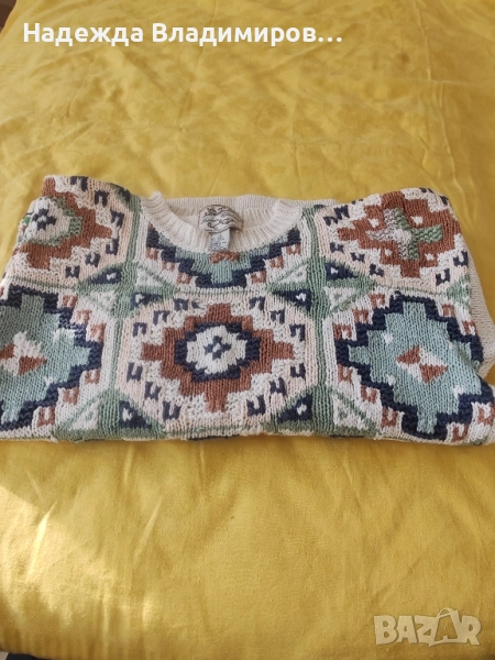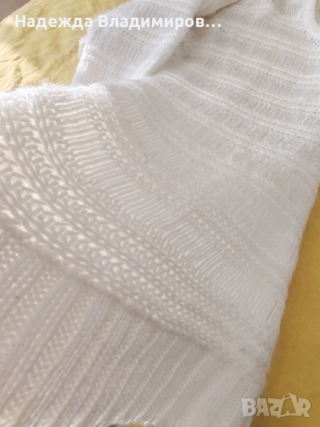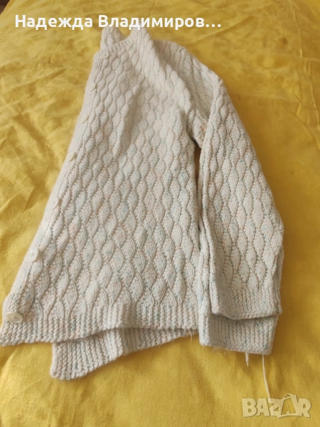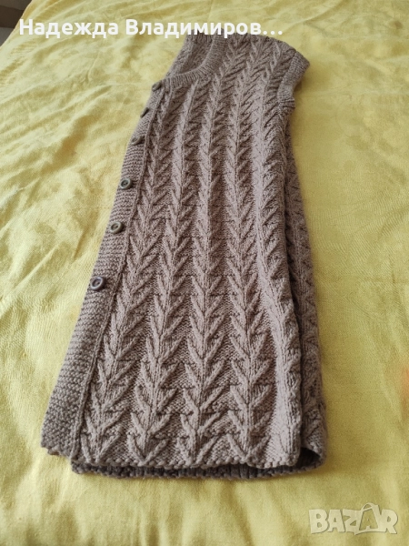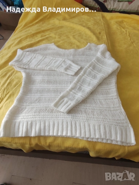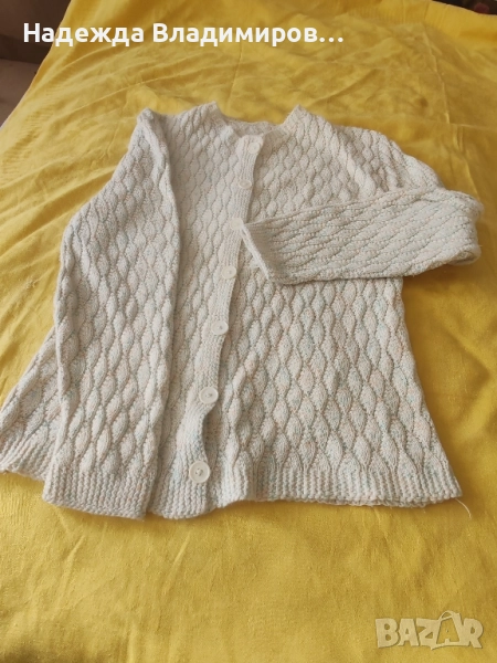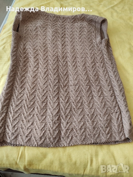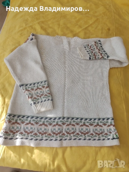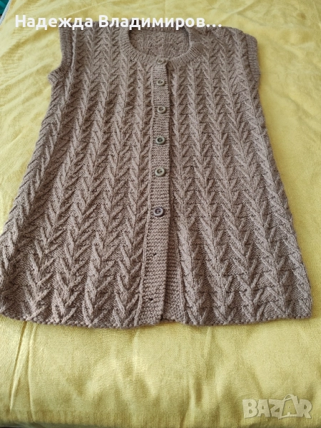 Продавам :Снимка 1-4 ръчно плетена феерична блуза с рехава плетка,дължина 68 см., гръдна обиколка 110 см., паднал ръкав, дължина 46 см. - 18 лева. Снимка 5-8 памучен пуловер, машинно плетен, дължина 60 см., гръдна обиколка 108 см., дължина на ръкава 45 см. Има леки петънца по гърба, от стоене в шкафа- 13 лева. Снимка 9,10 :ръчно плетена жилетка от пан,дължина 60 см., гръдна обиколка 94 см., дължина на ръкава 60 см. - 15 лева. Снимка 11-13 ръчно плетено елече, от пан, кафяво, дължина 66 см., гръдна обиколка 88 см. - 15 лева.