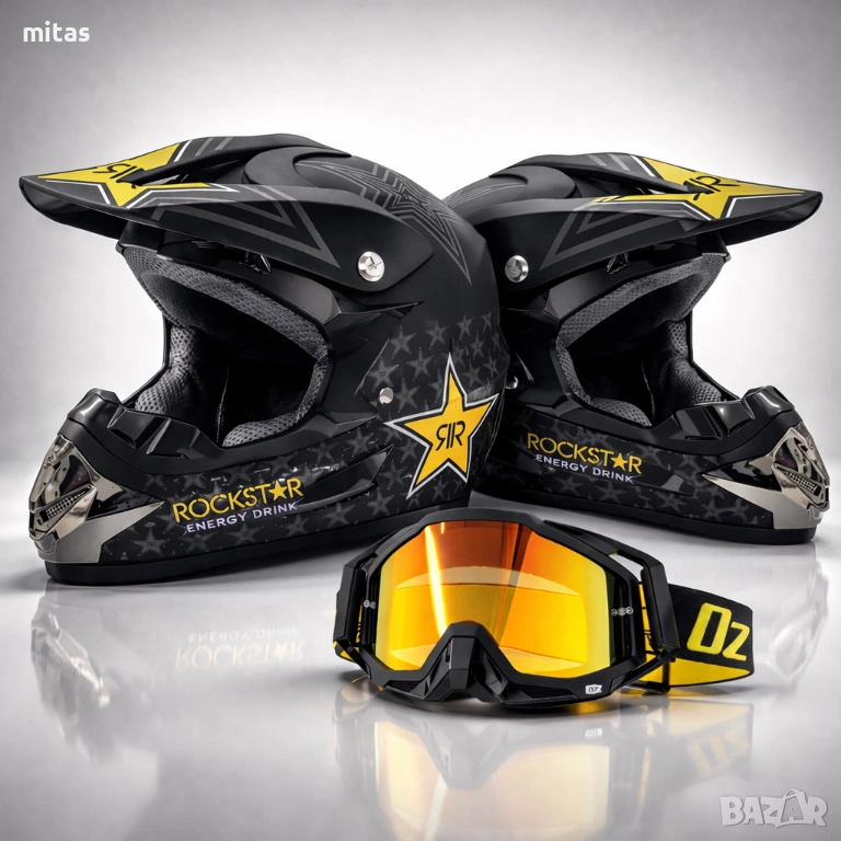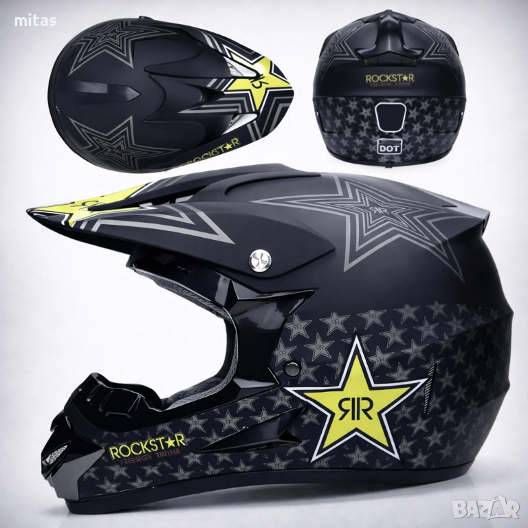кросова каска ROCKSTAR, full face каска, каска DOT сертификат, каска S M, каска за мотор, каска за ATV, каска за бъги, каска за велосипед, каска за електрически скутер, каска за тротинетка, BMX каска, защитна каска, helmet full face, DOT helmet, motocross helmet ROCKSTAR