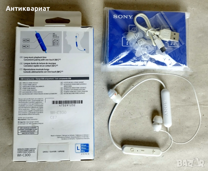 Безжични слушалки за спортуване Sony WI-C300, снимка 1 - Bluetooth слушалки - 52137454 Безжични слушалки за спортуване Sony WI-C300, снимка 2 - Bluetooth слушалки - 52137454 1/2