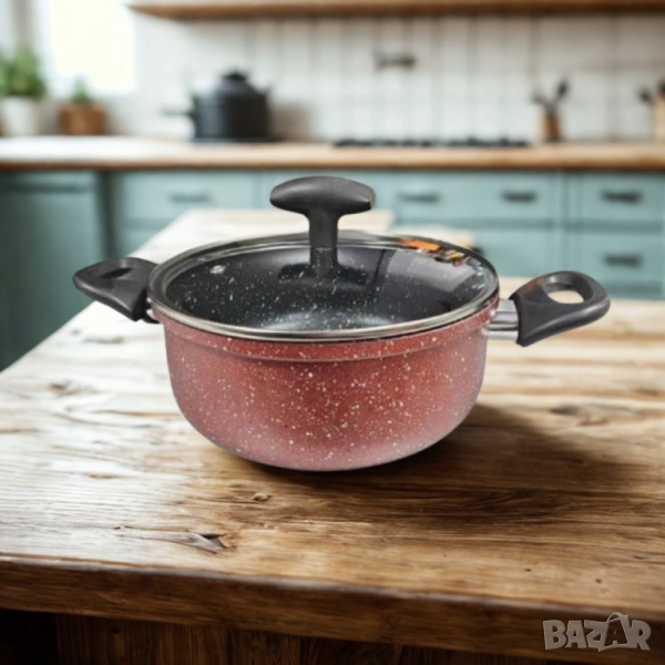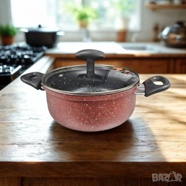 Тенджера Rosberg, 22 см, 4.3 л, Мраморно незалепващо покритие, Индукция, Бордо Меланж