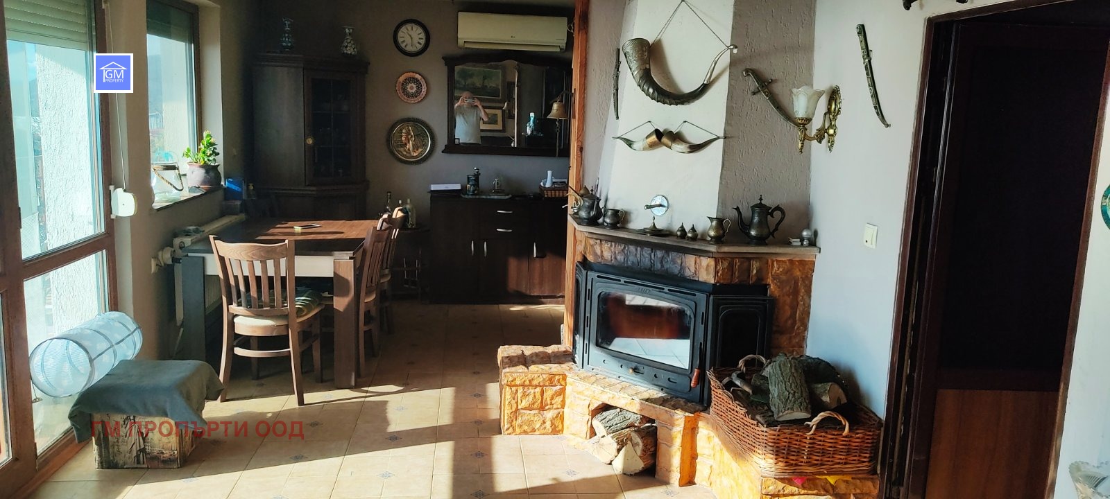 Отопление: италиански котел на твърдо гориво IMMERGAS и 11 радиатора в цялата къща, камина 10 kW. И три инвертора за климатроник.