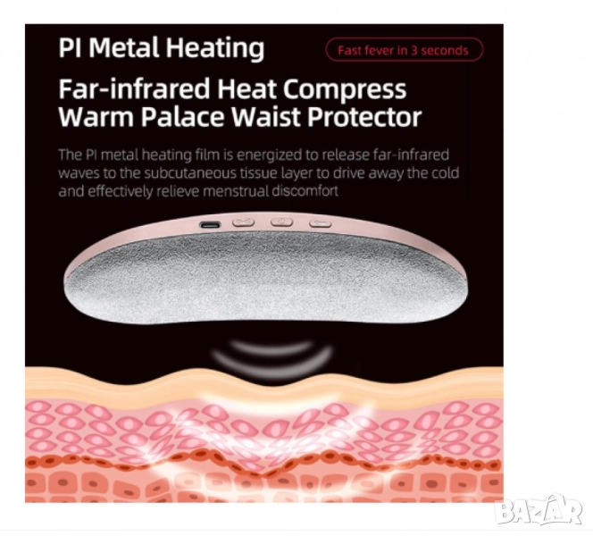 Менструалният термо колан е идеалното решение за жени, които страдат от менструални болки, спазми, отпадналост или напрежение в областта на кръста и корема. Съчетавайки инфрачервено загряване и вибрационен масаж, той осигурява бързо и ефективно облекчение, като подпомага кръвообращението и отпуска мускулите. Подходящ е както за използване у дома, така и в офиса или по време на пътуване.