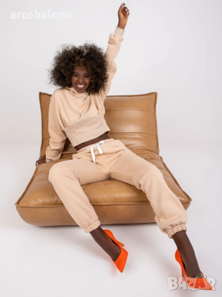 дамски комплект от анцуг и панталон Brunete е идеален за ежедневно носене, независимо дали е за вечерно излизане или разходка. Гладките завършеци и свободната кройка създават перфектната комбинация от спортен и ежедневен стил. Комплектът включва суичър и спортен панталон, изработени от смес от 70% памук и 30% полиестер. Суичъра е със свободна кройка, удобни ръкави и качулка. Панталонът има регулируема талия и еластични маншети. Идеален е за ежедневни дейности. Удобен и лесен за поддръжка - просто се пере в пералня на 30°C. Този комплект ще допълни гардероба ви.