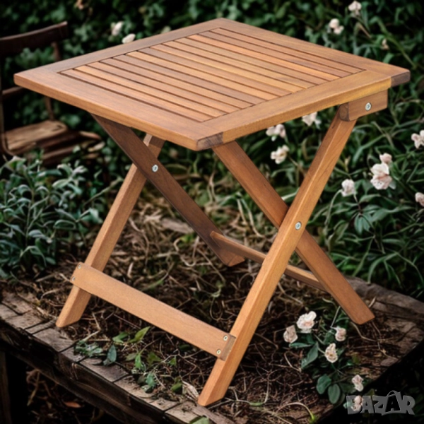 Маса сгъваема Muhler Meranti - 50x50xH68cm, дърво → Обява 52137975