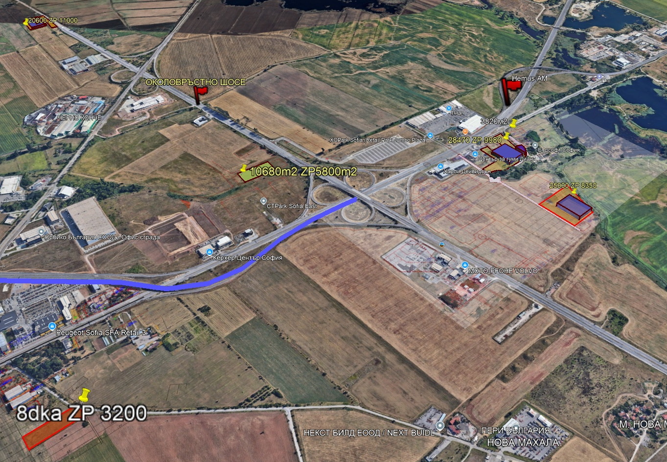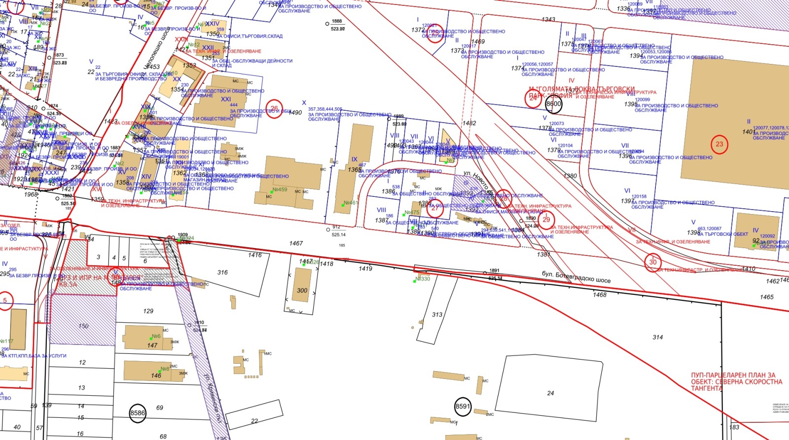ПИ 20000м2 и ПУП ПЗ с лице 180м на Околовръстно шосе