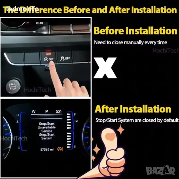 Този кабел позволява автоматично изключване на системата Auto Stop-Start при VW Golf 7/7.5 (2014–2019) и Passat B8/B8.5, оборудвани с бутон „A off“. Комплектът включва кабел и инструмент за лесен Plug & Play монтаж, без нужда от модификации. След инсталация функцията се деактивира автоматично при всяко стартиране на двигателя, като индикаторната лампа светва в червено. Не са необходими допълнителни настройки или ръчно изключване всеки път.