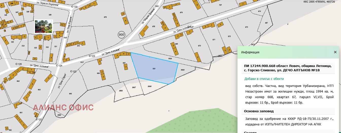 Продава ПАРЦЕЛ, с. Горско Сливово, област Ловеч → Обява 52139082