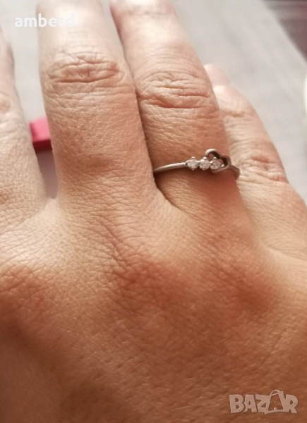 от сребро проба 925 и 3 бели циркони. Вътрешен диаметър - 18мм. Можем да изработим този модел в желан от вас размер.
