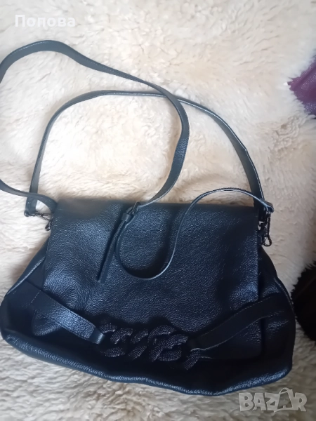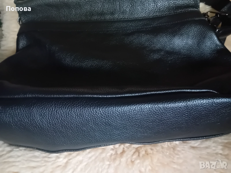 Висококачествена естествена кожа в наситено черен цвят .Размери 38 см. на 26 см.,дъно 7 см..Дълга дръжка с регулираща се дължина ,къса дръжка - 62 см..Едно отделение разделено на две с преграда и 2 джоба.Супер аксесоар.