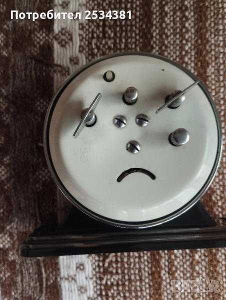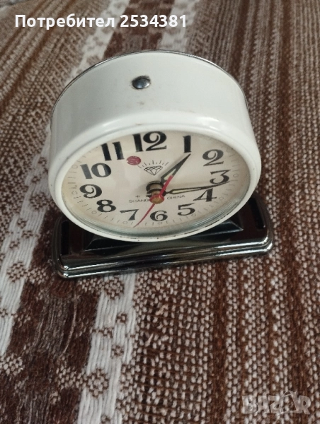 Стар часовник будилник, механичен.Има проблем, поработи малко и спре,заклатиш го и пак тръгва.Произведен в Китай.