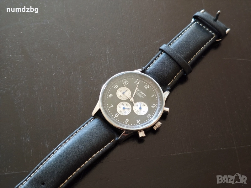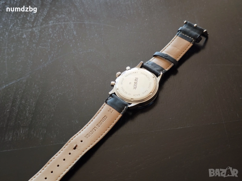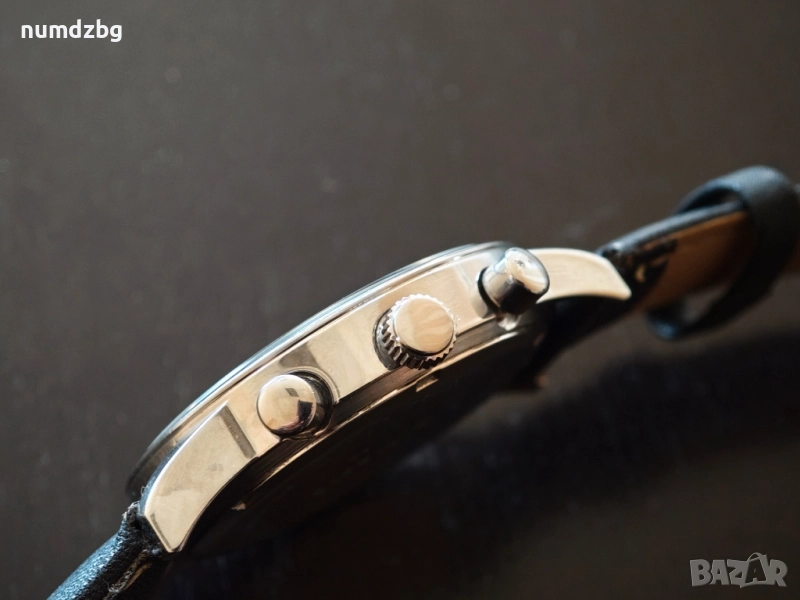 часовника е Анкер хронограф немско изпълнение леки забележ какво каишката,часовника е като чисто нов . Без забележки по механизъм и работа механизма и японски миота висок клас часовник . Цена която е закупуван като нов е 390 лв. абсолютно всички стрелки всичко по часовника се движи и работи . цената която му искам за такъв часовник е символична.