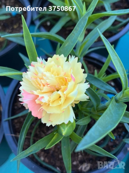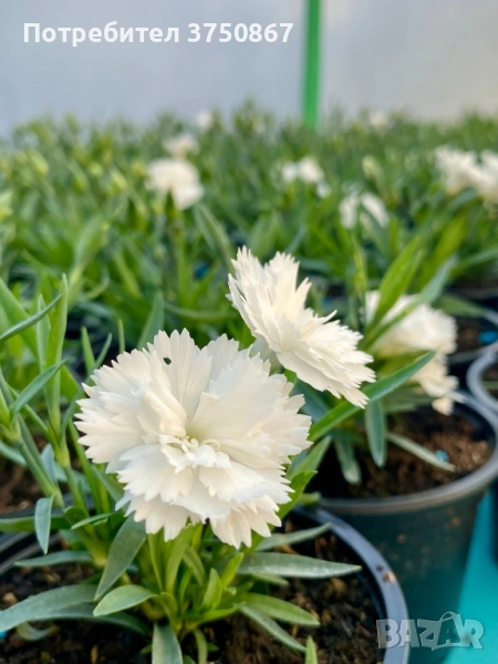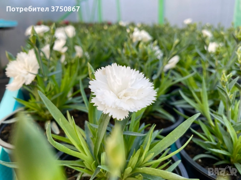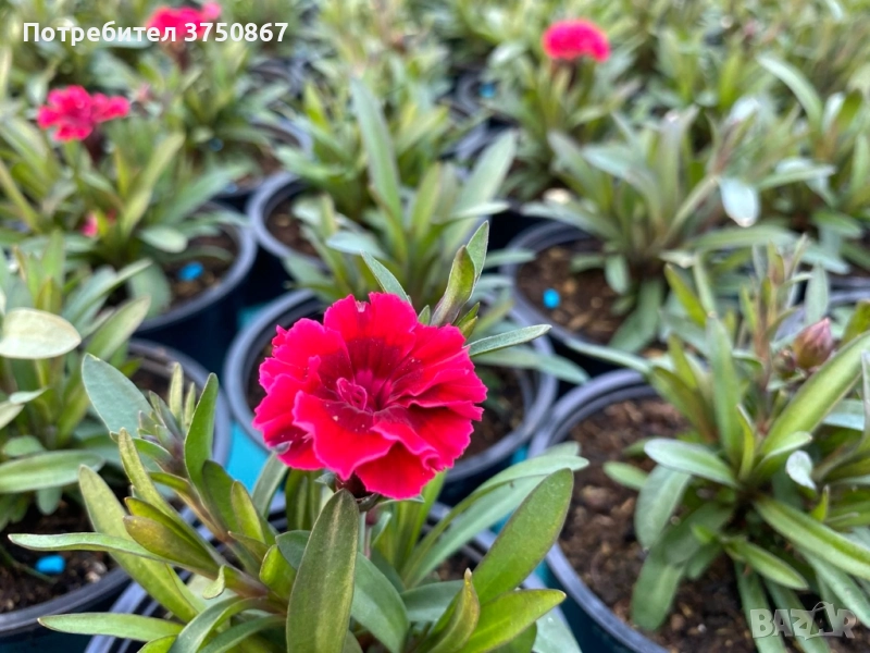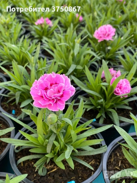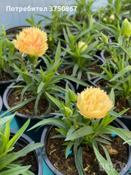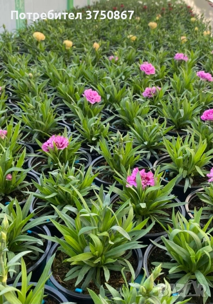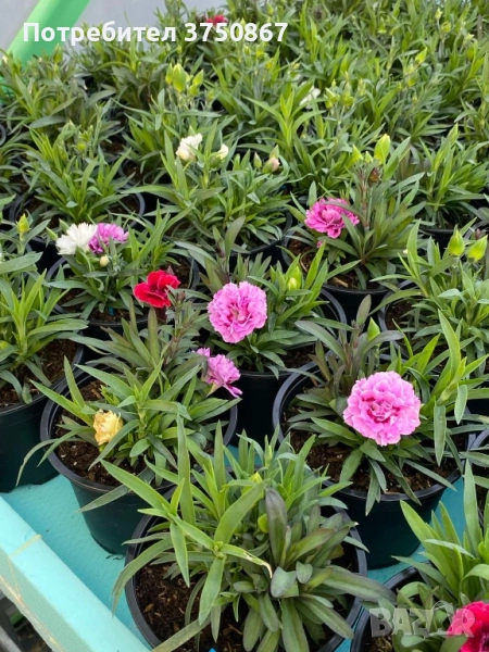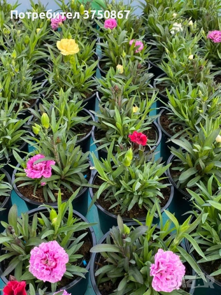 Карамфил/Dianthus 🧡💜🧡 АРОМАТНИ И СТУДОУСТОЙЧИВИ Нискостеблено, многогодишно растение, достигащо височина до 20 см. Цъфти от февруари - март до септември - октомври на открито. На закрито цъфти цяла зима. Предпочита слънчеви изложения, но се развива отлично и на частична сянка. При засаждане на карамфила на слънце растението ще бъде по-компактно, цветът на цветовете и листата ще бъде по-ярък, но периодът на цъфтеж на карамфила ще бъде намален. Не понася прекомерната влага. Напълно зимоустойчиво растение и изключително лесно за отглеждане. Карамфилът е грациозно и ароматно цвете и е едно от най-популярните цветя в озеленяването. Използва се за направата на бордюри, алпинеуми, цветни петна и композиции. Може да се засажда в сандъчета или самостоятелно в саксии, както и в комбинация с други растения. Името на карамфила означава - Божествено цвете. В езика на цветята, карамфилът е символ на чистота, искреност, чиста любов, добрина, късмет, радост и приятелство. 🧡 Предлагаме четири сорта нискостеблен, ароматен карамфил: 1. SuperTruper® GRACE - наситено лилав и силен благоуханен аромат. 2. Colores® ORO- ярко жълт с напръскан с розови багри без аромат. 3. Diatica® PURPLE MAX - ярко червено-виолетово и силен благоуханен аромат. 4. Diantica® PURE WHITE - снежно бял и силен благоуханен аромат. Сортовете се отличава с обилен цъфтеж и лесно отглеждане. Засадени единично в работни саксии Ф 10,5. 👉👉👉 Цена - 5,30 лв./бр. (2,71 €/бр.) 💜 Предлагаме троен микс четири комбинации - засадени по три броя /микс от три цвята/ в работни саксии Ф 12 в следните комбинации: Комбинация 1 - SuperTruper® GRACE +Colores® ORO+Diatica® PURPLE MAX. Комбинация 2 - SuperTruper® GRACE+Colores® ORO+Diantica® PURE WHITE. Комбинация 3 - Colores® ORO+Diatica® PURPLE MAX+Diantica® PURE WHITE. Комбинация 4 - SuperTruper® GRACE+Diatica® PURPLE MAX+Diantica® PURE WHITE. 👉👉👉 Цена - 12,50 лв./бр. (6,39 €/бр.) 🚘📦🚘 Работим с куриерски фирма Еконт. За Варна може и лично предаване. 🌿 може да направите поръчка и на телефони: +359888873211 +359886771048 #карамфил #нискостебленкарамфил #ароматенкарамфил #студоустойчивкарамфил