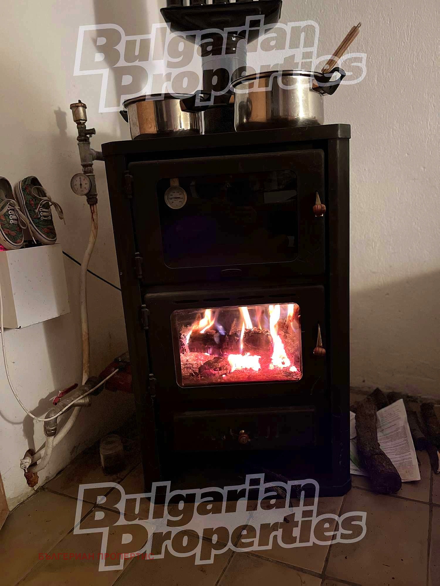 Отопление - печка с водна риза и подово отопление в кухнята