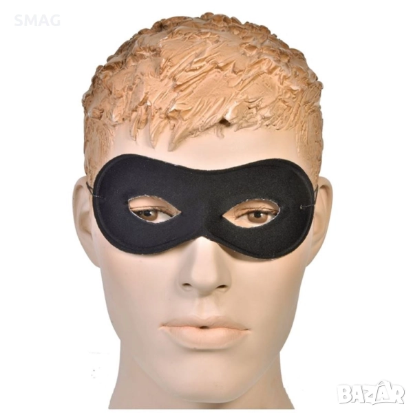 Карнавална маска с овална форма в черен цвят, подходяща за Хелоуин, карнавал или тематични партита. Лека и удобна за носене, позволява добавяне на грим или декорации за персонализирана визия.