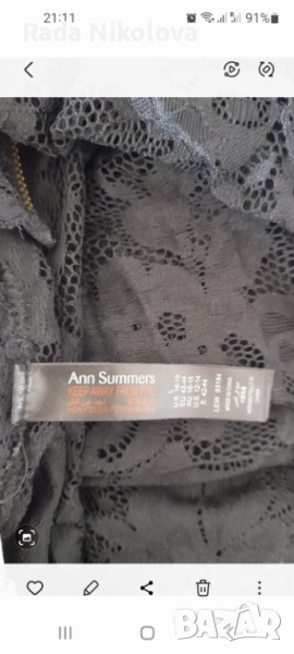 Дантелена секси пижамка със дълги ръкави цвят черно със златист зип марка Ann Summers.