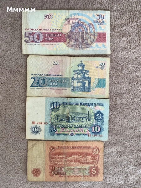 Банкноти 50лв,20лв,10лв,5лв.