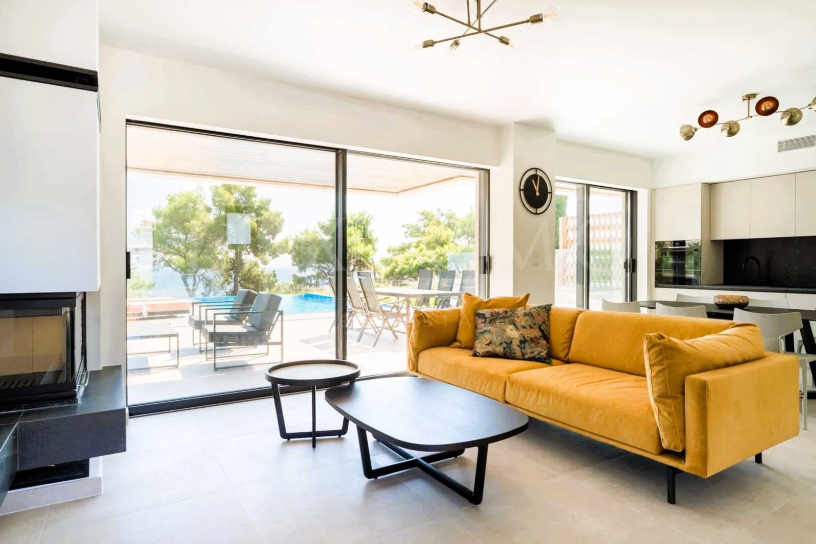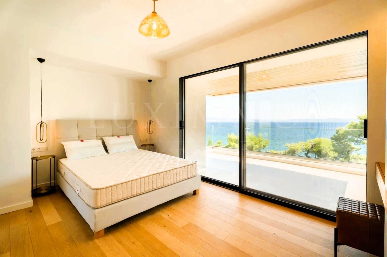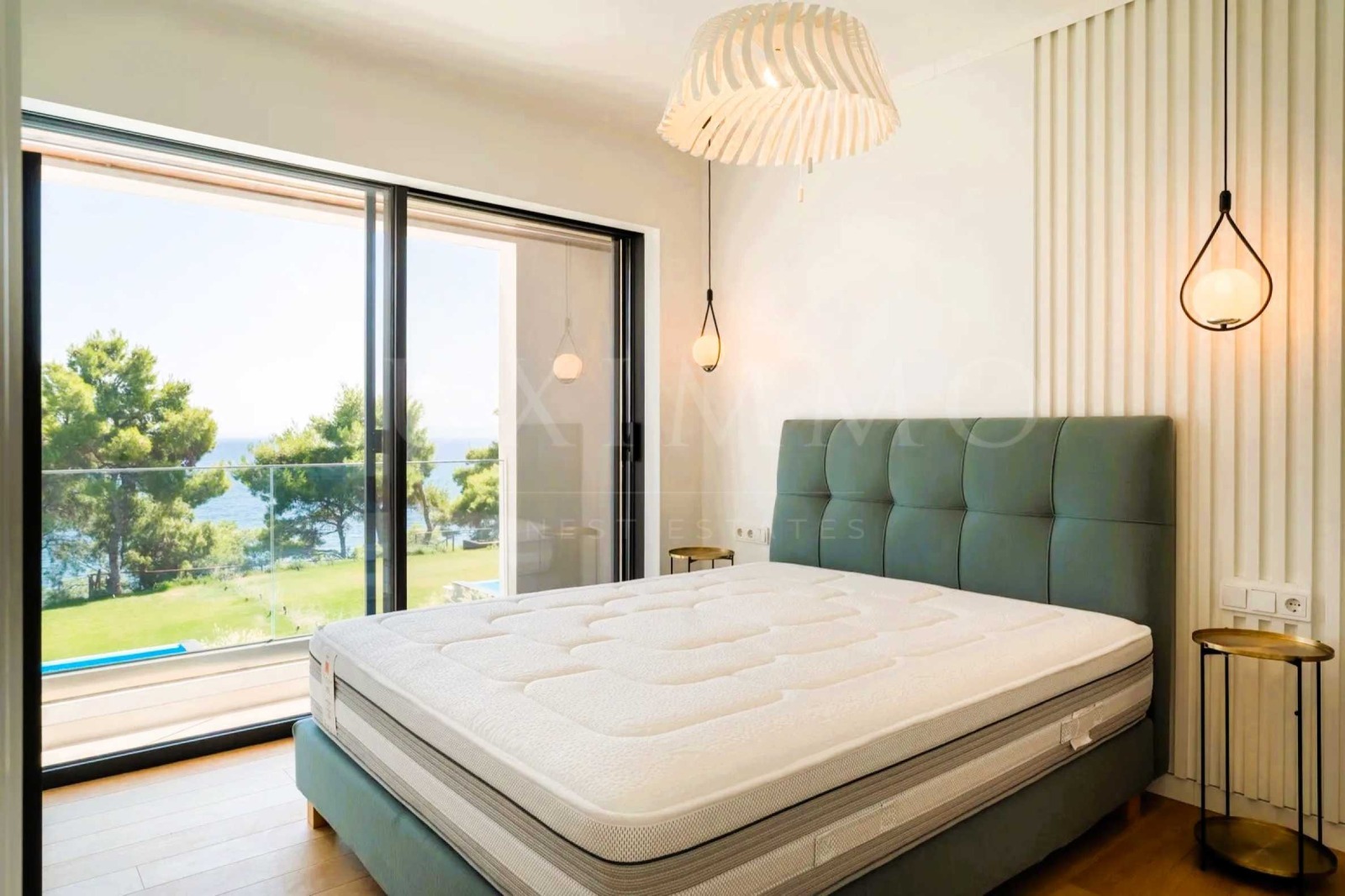 Представяме ви рядка възможност за придобиване на луксозна самостоятелна вила, разположена на първа линия до морето в престижната зона на Неа Потидеа, Халкидики. Този имот е олицетворение на средиземноморската мечта, предлагайки комбинация от лукс, уединение и несравними панорамни гледки.