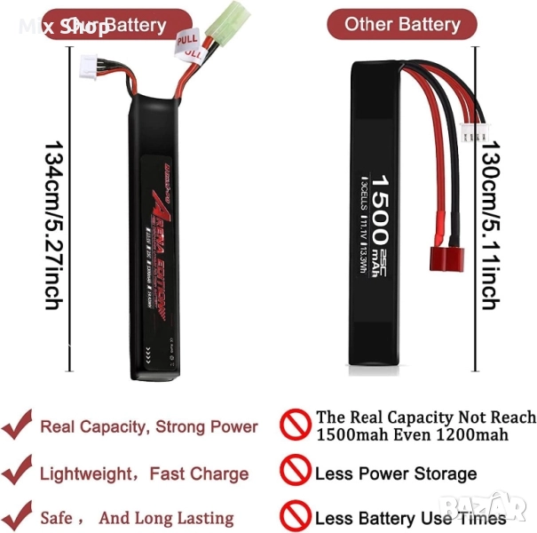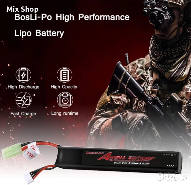 Нова Високомощна Еърсофт батерия 11.1V LiPo презареждаща, 1300mAh 3S 25C