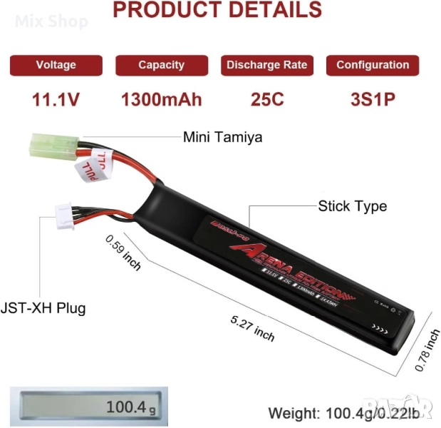 еърсофт е изработена от висококачествени Lipo клетки и има наистина добра скорострелност, 25C високоразрядна Lipo батерия за еърсофт, която ще ви осигури повишена скорострелност и бързо време за реакция на спусъка.