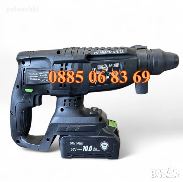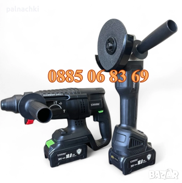Комплект 4 в 1 от акумулаторен перфоратор, ъглошлайф 125 мм, гайковерт - винтоверт 36V 10Ah в куфар StahlMayer Black XR