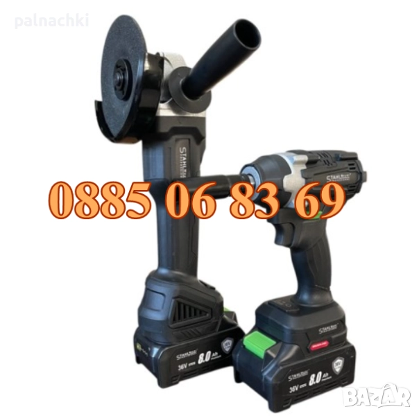 Комплект от акумулаторен ударен Гайковерт и Ъглошлайф 36V 8,0Ah с подарък дълбока вложка StahlMayer Black XR
