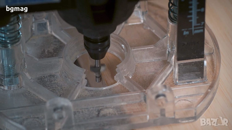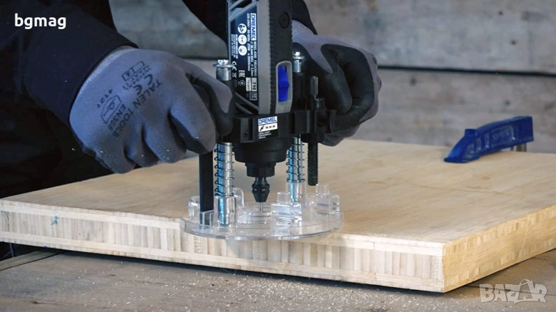Превърнете Вашия Dremel инструмент в оберфреза за профилно фрезоване на кръгове, символи и инкрустации, декоративни ръбове и за ръчно профилно фрезоване успоредно на ръба. Блокировка на потапянето в ръкохватката - само завъртете ръкохватката, за да блокирате/освободите.