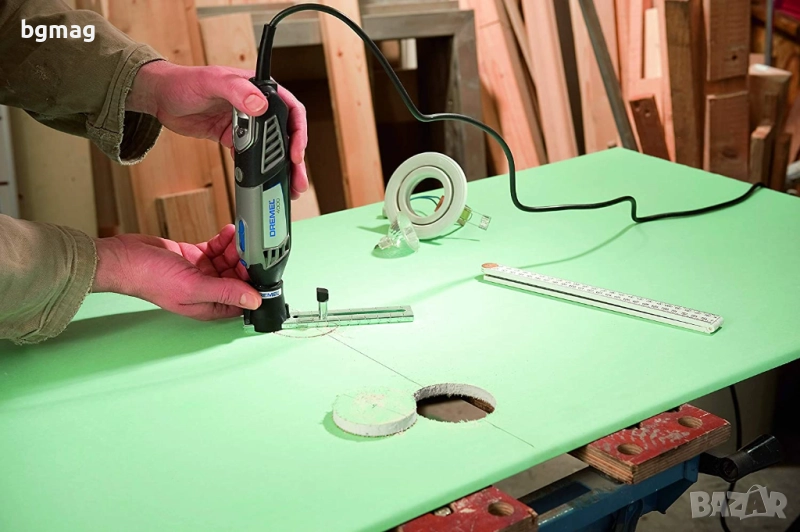 Лесно се свързва с вашия ротационен инструмент Dremel за правене на прецизни отвори, прави и кръгли срезове