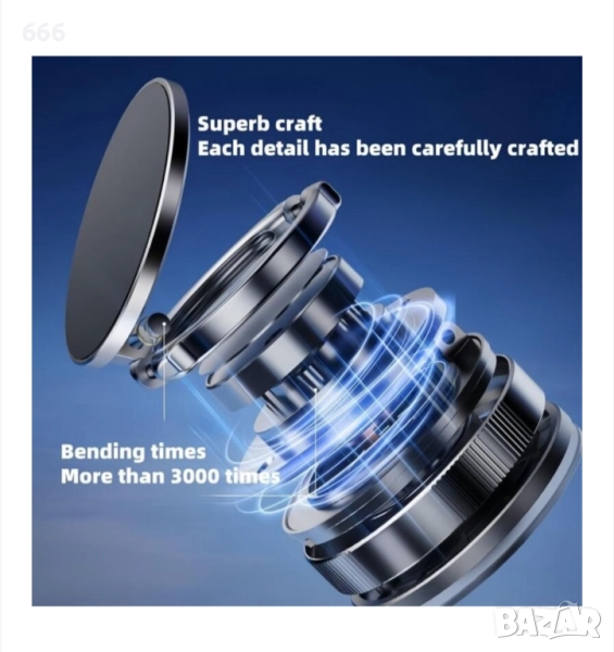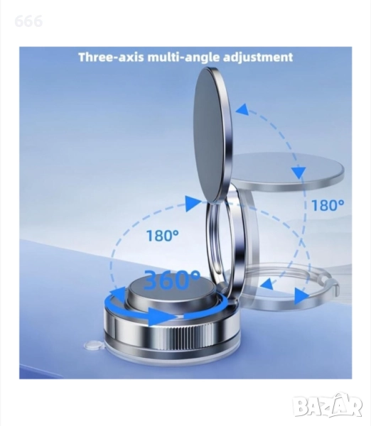 Магнитен държач за телефон с вендуза, регулируем на 360°