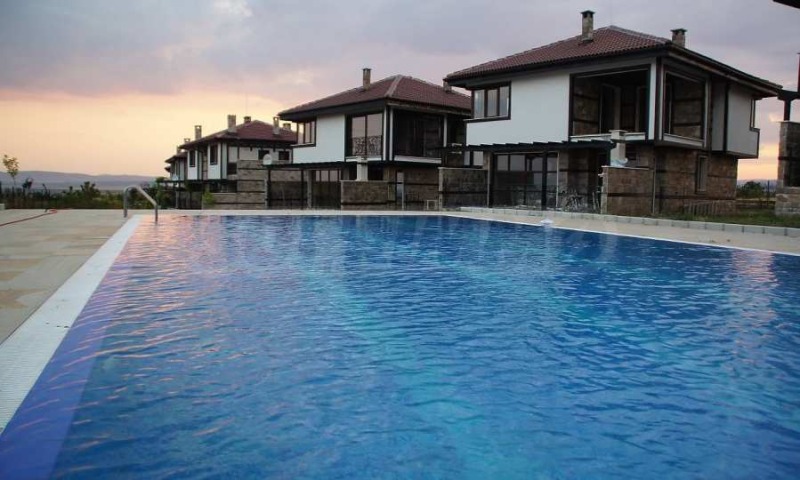 Представяме за продажба двуетажна къща във възрожденски стил, изградени от камък и дърво, в затворен комплекс от вили във вилната зона на Кошарица. Разположен сред зеленината на екологично-чист район, до хълмовете на Стара планина, на 10 минути с кола от плажовете на Слънчев бряг.