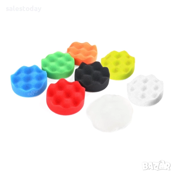 7 полиращи гъби 80 мм + полираща филц + велкро диск + адаптер