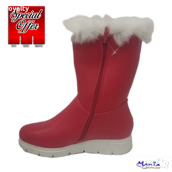 Червени дамски боти с бял пух → Обява 52142117