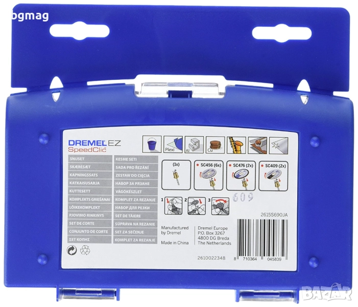 DREMEL® SC690 е комплект от 10 диска с EZ SpeedClic захват за рязане и специалният EZ SpeedClic дорник.
