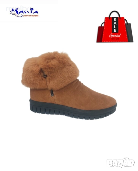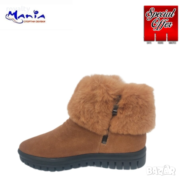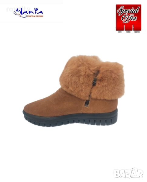 Дамски велурени боти с пух в модерния цвят камел.ходилото е на платформа с височина 3,5/2см и е много удобно.