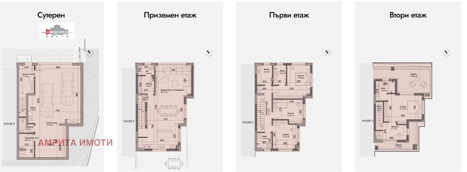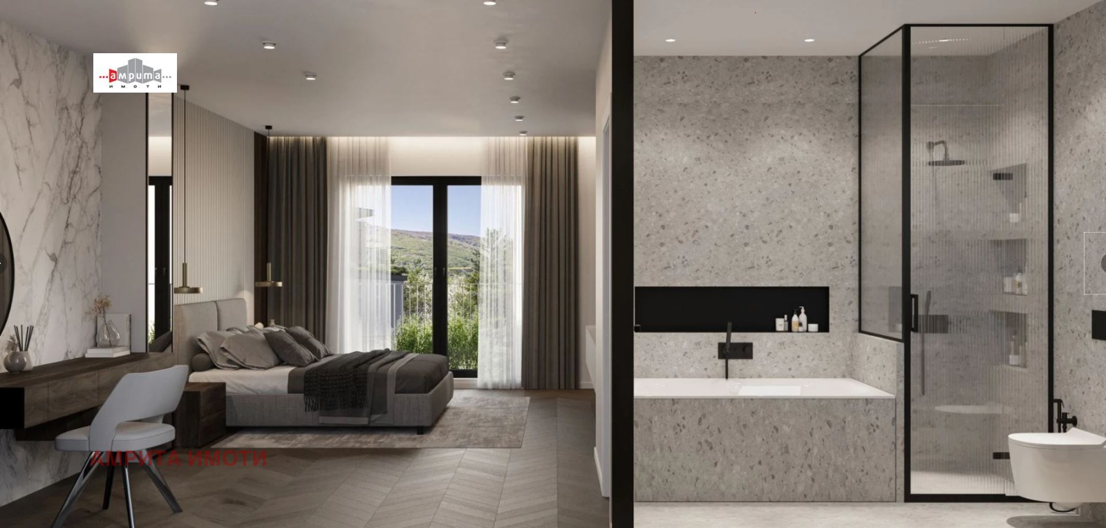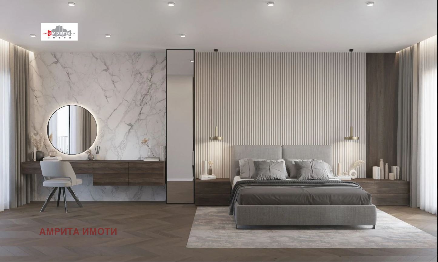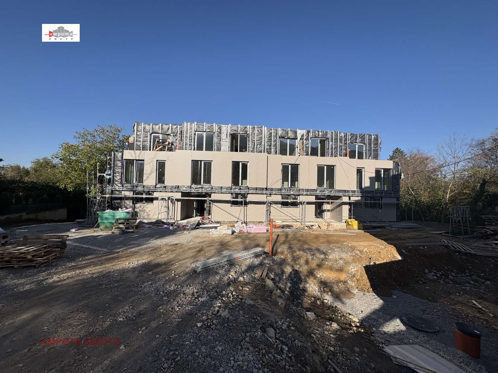 АМРИТА ИМОТИ има удоволствието да Ви представи стилна къща-близнак с РЗП от 368 кв.м и дворно място от 191 кв.м, част от бутиков затворен комплекс с 6 еднофамилни къщи, разположен върху терен от 2 137 кв.м. Комплексът е разположен в полите на Витоша, на тиха улица с бърз достъп до Околовръстен път, в близост до спирки на градски транспорт, училища, детски градини и супермаркети
