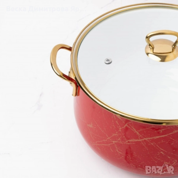 Тенджера Goldmann GM 8017-26R, 26x16см.\8.5л., Емайл, Индукция, Червена