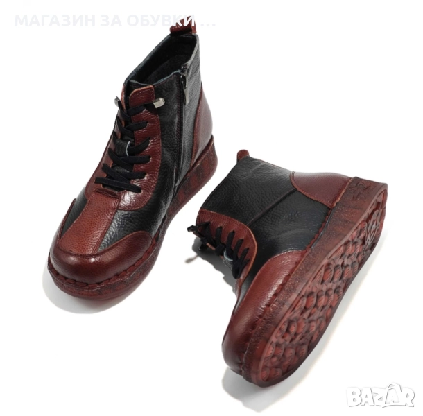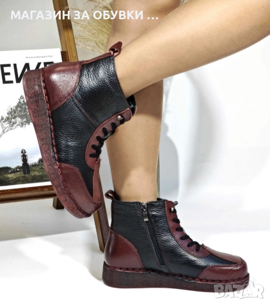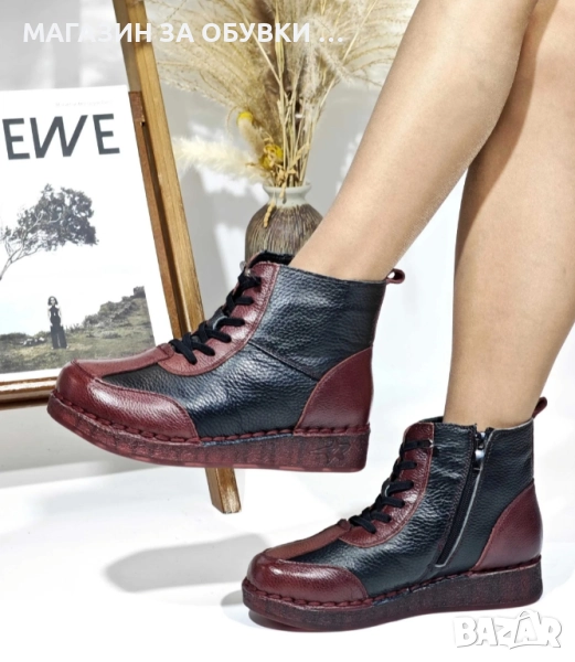 Дамски ежедневни боти от естествена кожа и силиконова противоплъзгаща подметка на дългогодишната марка "ЕКСЕС". Изключително мека кожа! Дължина на стелка - № 36 - 22,5см/ 37 - 23см / 38 - 24см / 39 - 24,5см/ 40 - 25см/ 41- 25,5см. Моделът е умален!Изпращаме с преглед и тест.