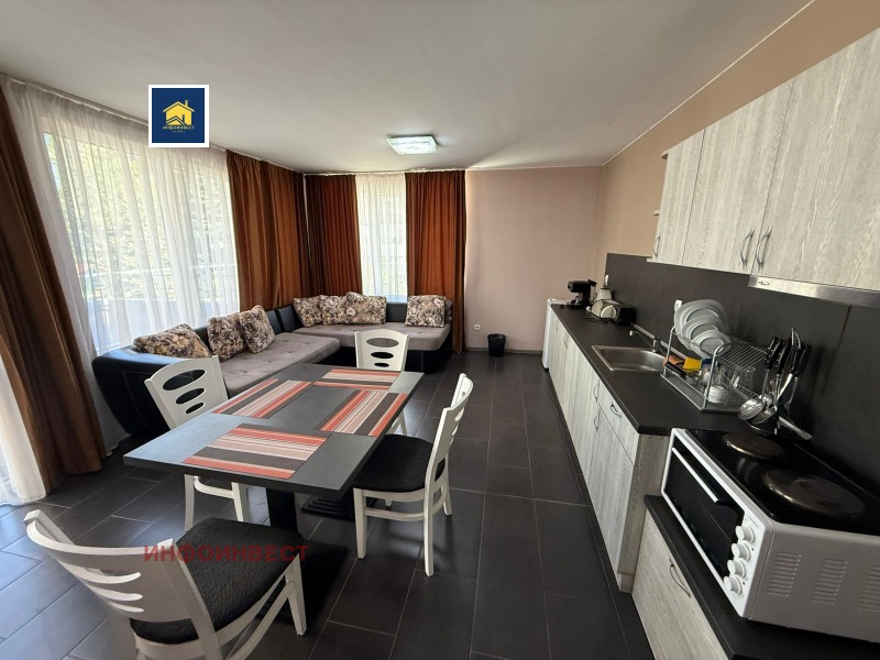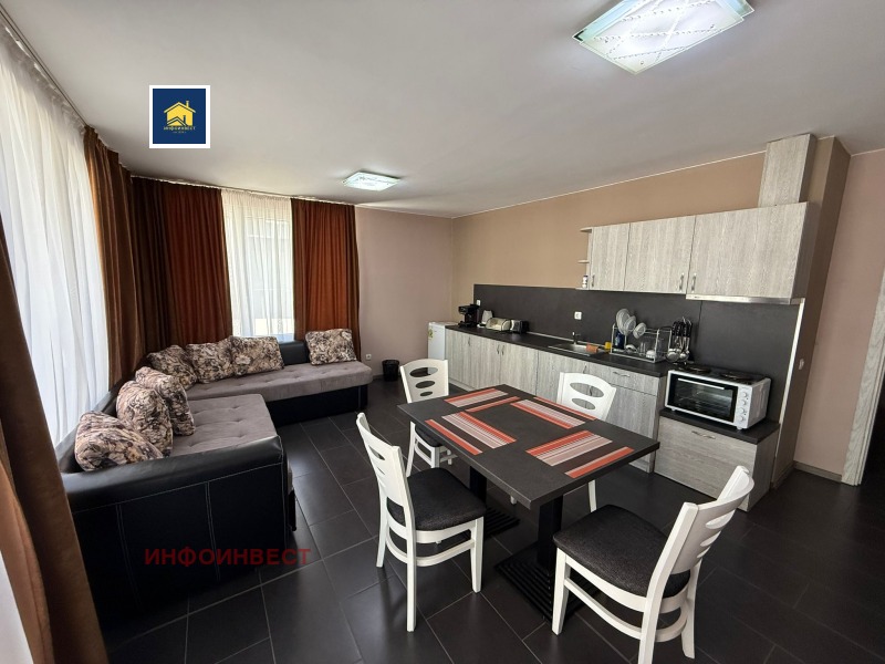 Прекрасен двустаен апартамент, с достъпна локация, намиращ се в зоната на ресторант 'Паничките'. Напълно обзаведен и оборудван с всичко необходимо за едно домакинство, готов за живеене. Имотът се състои от просторна дневна с кухня, спалня, баня с тоалетна, както широк балкон, за чудесно прекарване на летни вечери и не само. Има опция да се закупи и паркомясто, което струва 5000 евро .